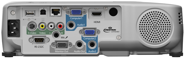 The EB-955W is very versatile in the classroom or office, and features a host of input options. The unit boasts HDMI, Video, S-Video, 2x VGA, USB A & B, 2 x Audio In, and RS232C inputs. Outputs include; Monitor Out and Audio Out.