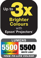 Brilliant image quality requires high colour brightness (colour light output), and Epson® 3LCD projectors have 3x Brighter Colours than leading competitive projectors*.