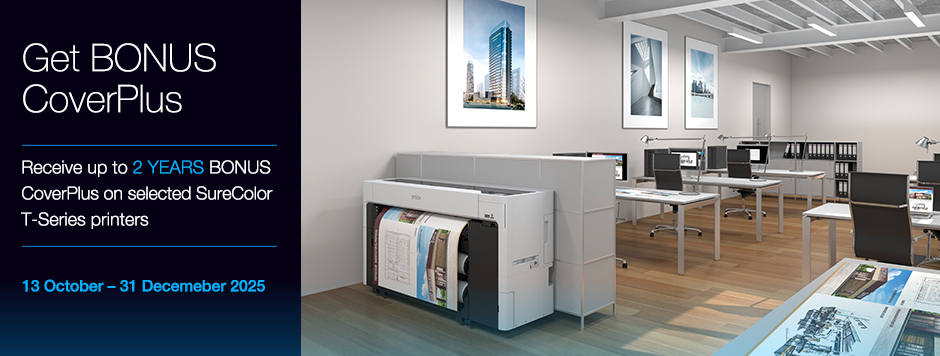 Purchase a new eligible Epson large format technical printer or printer with CoverPlus from an authorised reseller in New Zealand between:- 13 October 2025 and 31 December 2025 and receive BONUS CoverPlus, up to FIVE YEARS total cover!