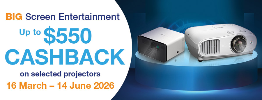 *Note this Epson Projectors up to $550 cashback promotion, ("Promotion") is for customers purchasing new eligible projectors supplied through Epson Australia Pty Ltd, trading as Epson New Zealand ("Epson"), and purchased from an Epson authorised projector reseller, dealer, or retailer located within New Zealand only. It specifically excludes projectors purchased on Epson websites (for which the cashback is automatically applied at time of purchase), or from outside of New Zealand, or products already claimed on previous promotions. Giveaway units, second hand, demonstration, ex-demonstration, factory seconds, refurbished, and other damaged products are not eligible for this Promotion.