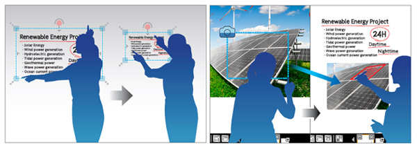 In addition to operation using a conventional interactive pen, it is now possible to operate using your finger on the screen. Opening and closing files, scrolling, moving and expanding objects, and annotation are just some of the possibilities available at the touch of a finger. Operation is intuitive for smoother and more interactive meetings.