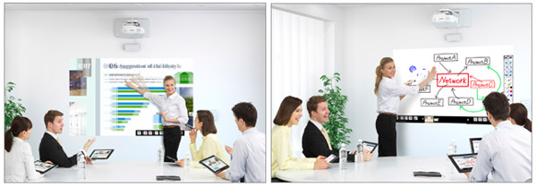 In comparison with conventional copy boards, sharing information using the MeetingMate projectors is quick and simple.
