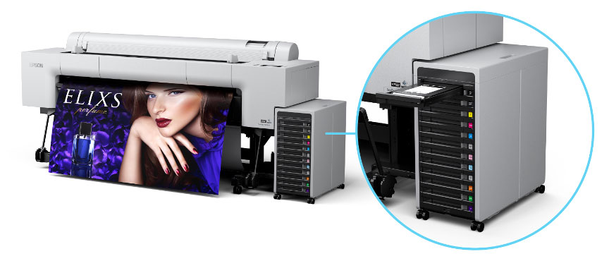 The SureColor P20560 comes with significant upgrades compared to the current model, offering faster processing speeds and an expanded 12-colour ink set that is shared with the SureColor P7560 and P9560, providing a wider colour gamut and up to 99% Pantone coverage. The SC-P20560 is fed by a newly designed bulk ink system and ships with 12 cost-effective 1.6L ink packs designed for high-volume print jobs. A new 4.3-inch optical touch colour LCD, optional 1Tb SSD and Adobe PostScript 3 improve workflow and efficiency with the SC-P20560. Epson Edge Print PRO RIP software is also bundled with the machine, making it a comprehensive solution for professional printing workflows.