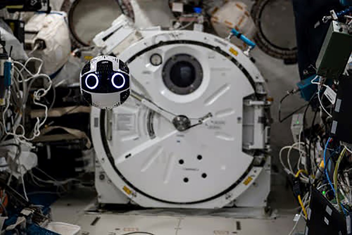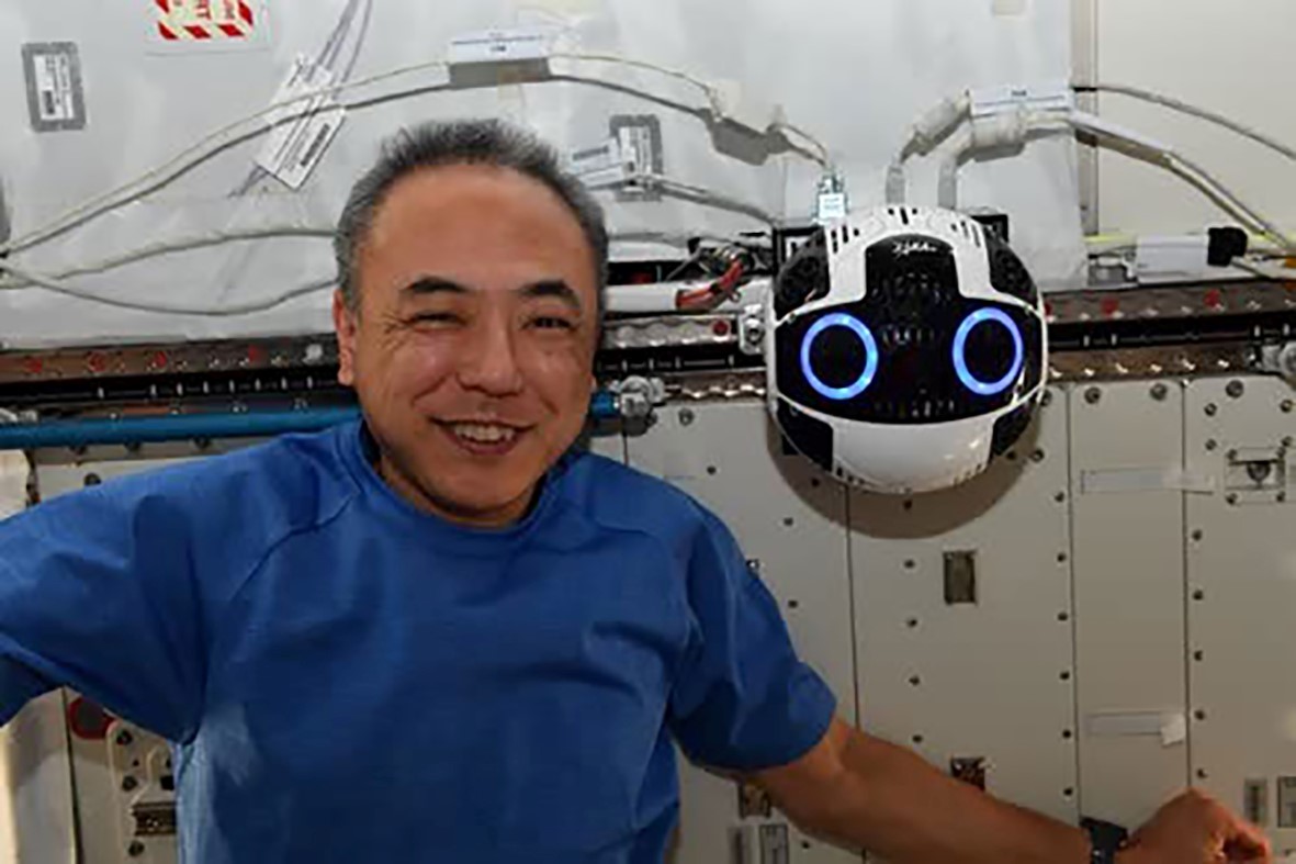 Astronaut Satoshi Furukawa and Int-Ball2 as it docks at the docking station© JAXA/NASA