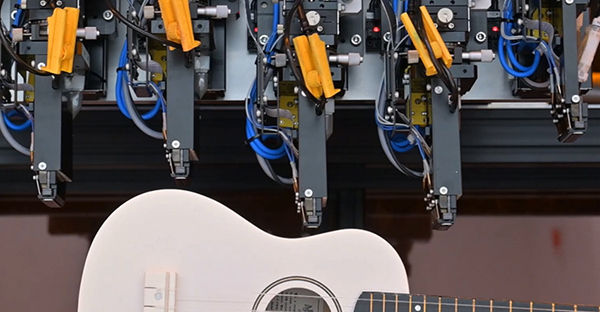 A 6-axis robot and lifting mechanisms1 that independently raise and lower the printheads are used in combination to allow Direct to Shape Printing System to flexibly accommodate printing on objects from different angles with outstanding quality and accuracy.