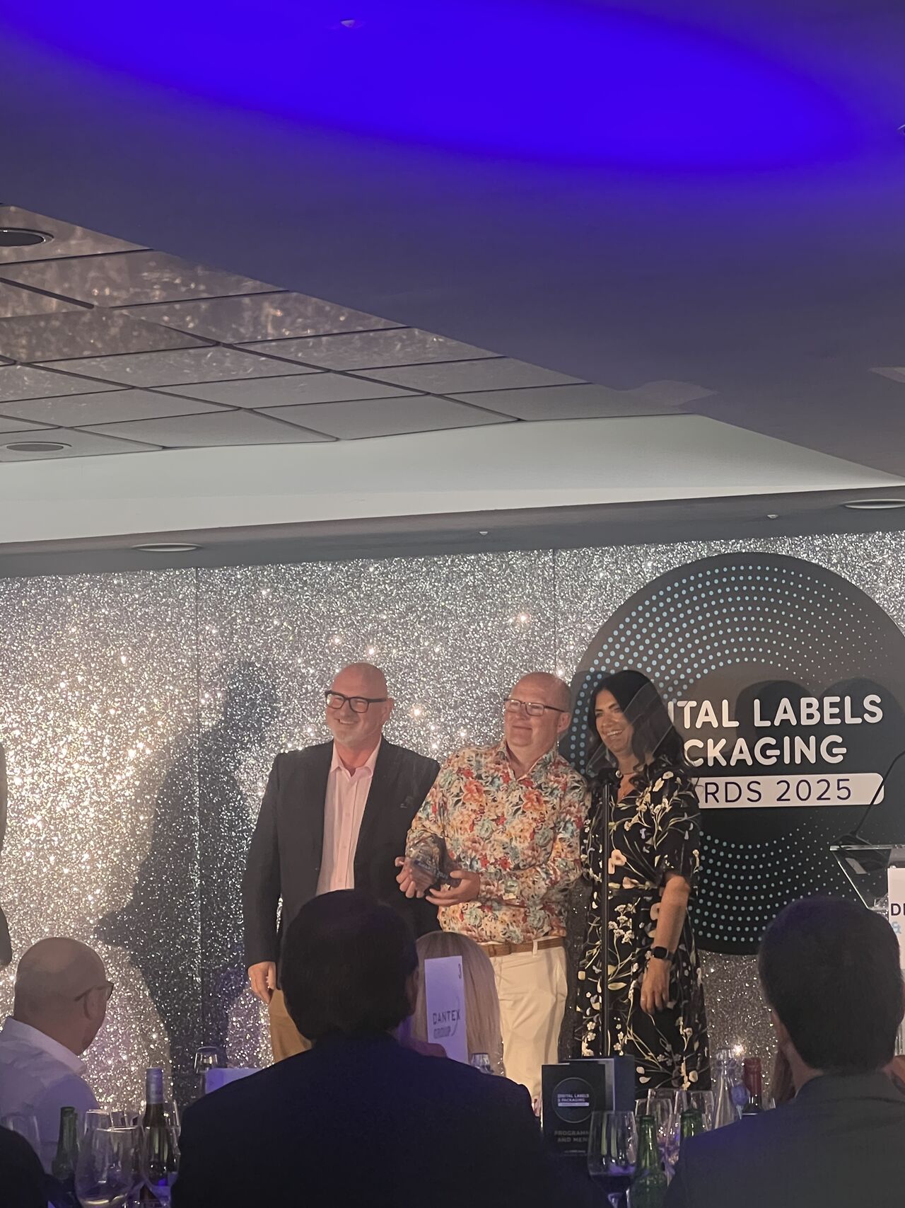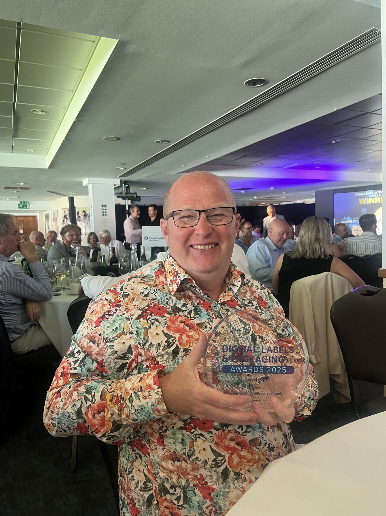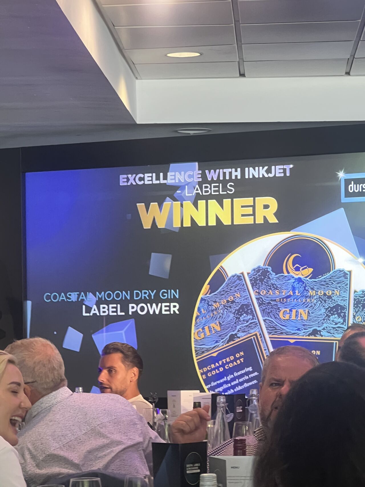 The images attached show Epson’s Christopher Smith accepting the Excellence with Inkjet Labels Award at Digital Labels & Packaging Awards 2025 on behalf of Label Power for their stunning Coastal Moon Dry Gin Label printed on an Epson SurePress.