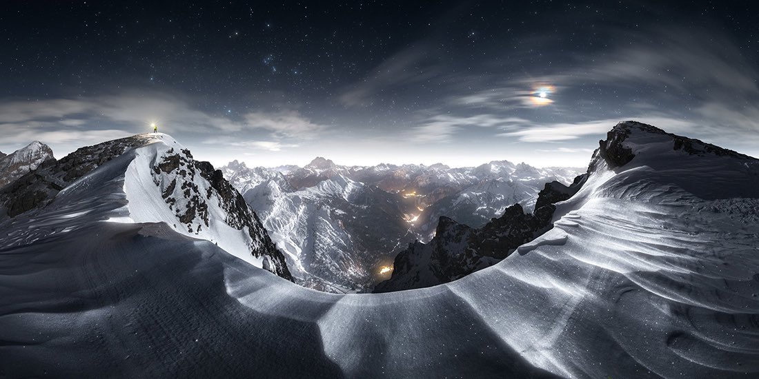 Describing Mann, a 270° panorama captured in the Italian Dolomites, Wides says, “For years I’ve been fascinated by the way lunar light reveals every texture of the snow, every pattern shaped by the wind. To bring this vision to life, I worked through the night at -15°C, using a Sony A6600 with a fisheye lens at 10mm, f/5.6, 10 seconds, ISO 1250, building a 270° panorama in the freezing wind.”