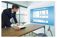 Even though its light weight and compact size enables it to be carried from room to room, the projector is capable of highly visible images thanks to its high brightness (up to 4,200lm) and superior 15,000:1 contrast ratio. Room lights don't have to be dimmed to see bright and clearly projected images, allowing meeting participants to concentrate better for improved meeting productivity.