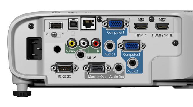 - Epson iProjection – Wirelessly display and control from your iPhone®, iPad® or iPod Touch®, Android™, and Chromebook devices (wireless LAN needs to be purchased separately).